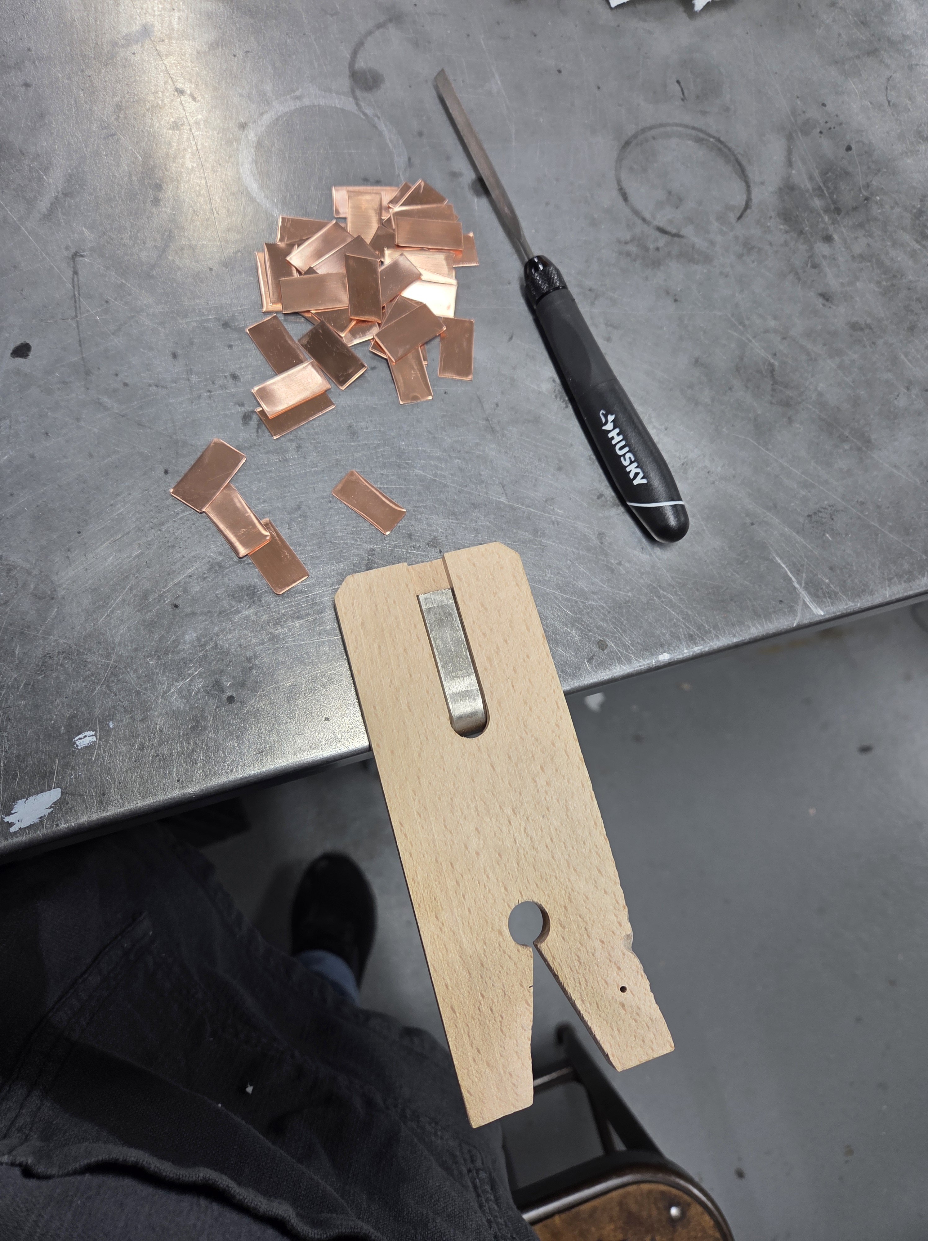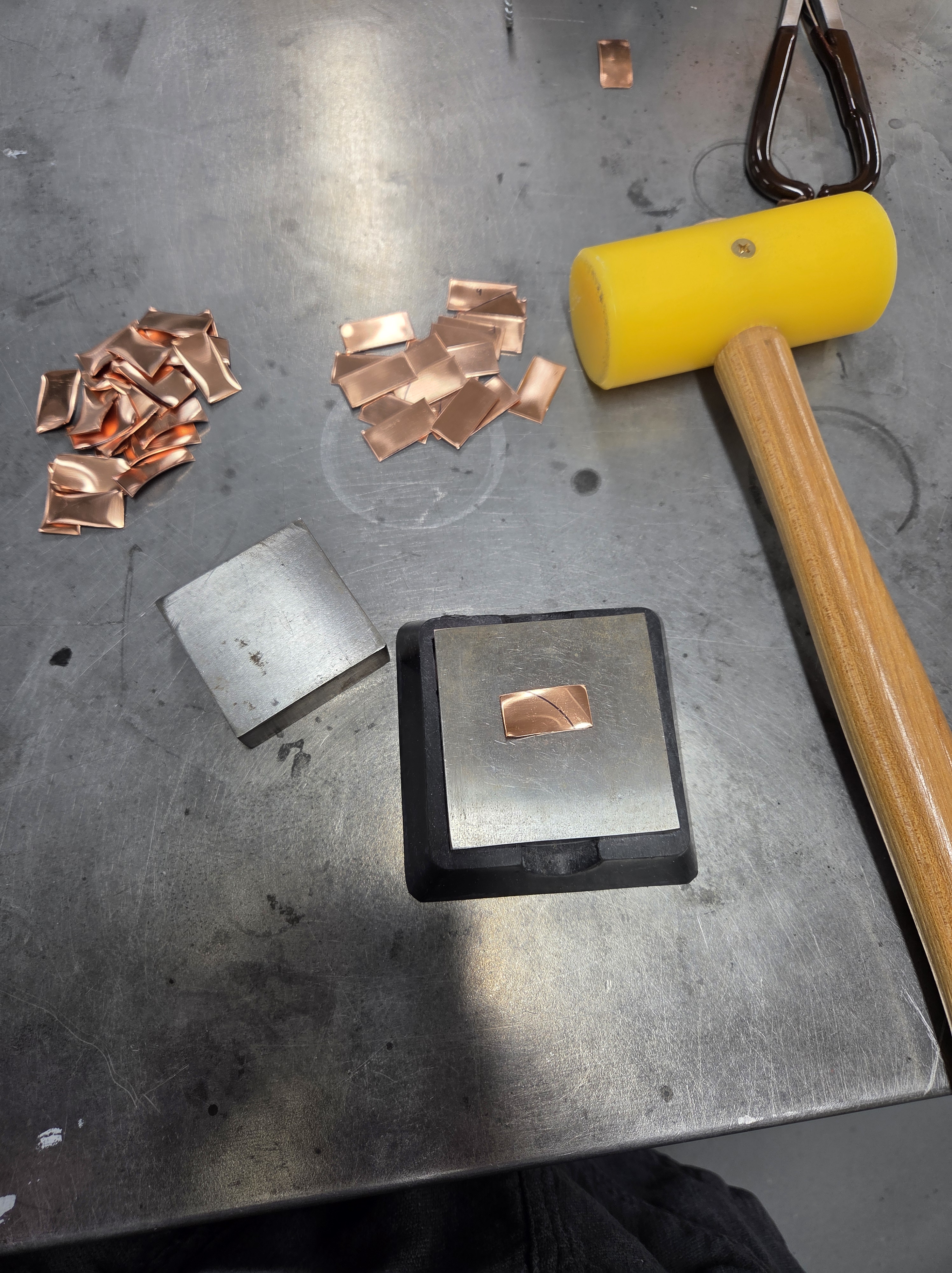 Instead, I spent my day preparing metal blanks for future projects, which meant cutting and then flattening multiple pieces before sanding the corners round. Then I have to dome each piece slightly before I clean them.